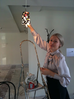 Lamps over reception.